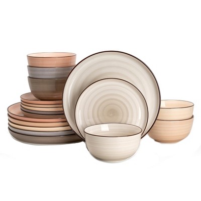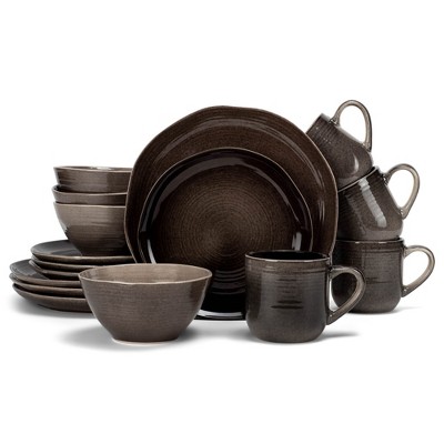 Elanze Designs 16-Piece Reactive Glaze Ceramic Stoneware Dinnerware - Service for 4, Mocha Grey Ombre