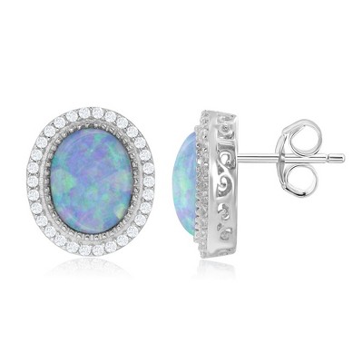 Opalata Sterling Silver Oval White Opal with CZ Border Earrings - White