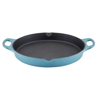 Rachael Ray 14" Nitro Cast Iron Skillet with Side Handle Agave Blue: Double Handled, 14 Inch, Electric & Gas Compatible