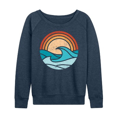 Women's - Instant Message - Wave Scene Lightweight French Terry Wide Neck Long Sleeve Graphic Shirt