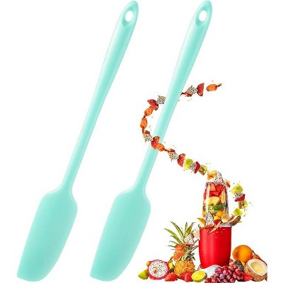 JDICTION 2-Pack Silicone Jar Spatula Set - Long Handle Non-Stick Rubber Scraper, Heat Resistant For Blenders, Cooking, Baking, Mixing (Mint)