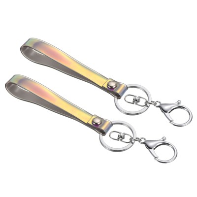 Unique Bargains PU Leather Keychain Fobs with Key Rings for DIY Crafts 2 Pcs