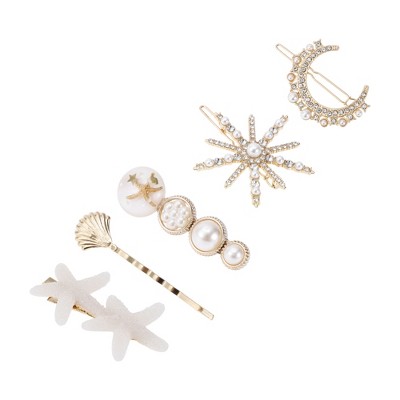 Unique Bargains Fashion Multiple Shapes Hair Clips Beige 5 Pcs