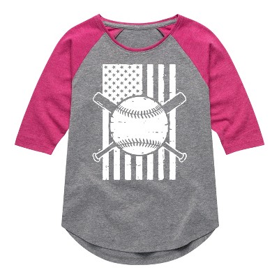 Girls' - Instant Message - Baseball Flag Shirt Tail Raglan Graphic T-shirt