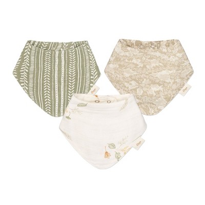 Willow 3-pc Muslin Baby. Bib Set (Neutral Leaf)