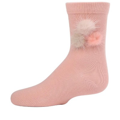 Memoi Fluffy Trio Pom-Pom Cotton Blend Crew Socks