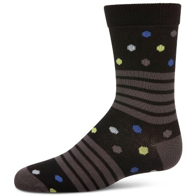 Memoi Stripe Dot Combo Boys Cotton Blend Crew Sock