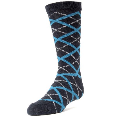 Memoi Diamond Interlock Boys Dress Cotton Blend Crew Socks