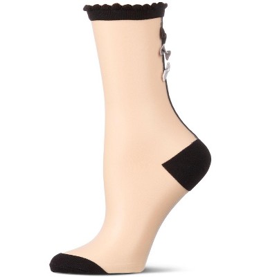 Memoi Women's Triple Bow Back Sheer Crew Socks