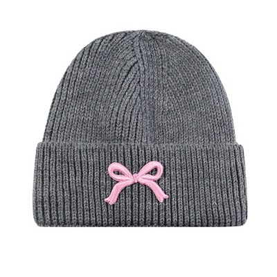 Anna-Kaci Women's Ribbed Knit Beanie Hat with Folded Cuff and Embroidered Bow Detail for Everyday Looks