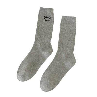 Anna-Kaci Women's 3-Pair Minimalist Crew Socks with Embroidered Bow Detail Soft Knit Everyday Comfort Sock Set - Gray