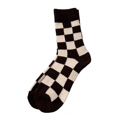 Anna-Kaci Women's 3-Pair Checkerboard Crew Socks Soft Knit Fabric Ribbed Cuff Comfortable Everyday Giftable Sock Set - Coffee+White