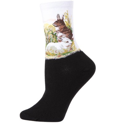 Memoi Women's Rabbit Limited Edition Art Cotton Blend Crew Sock White 9-11