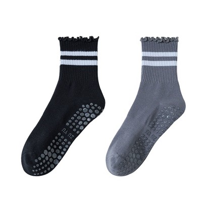 Memoi Women's 2 Pair Pack Rugby Stripe Buttersoft Crew Socks Gray 9-11
