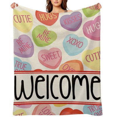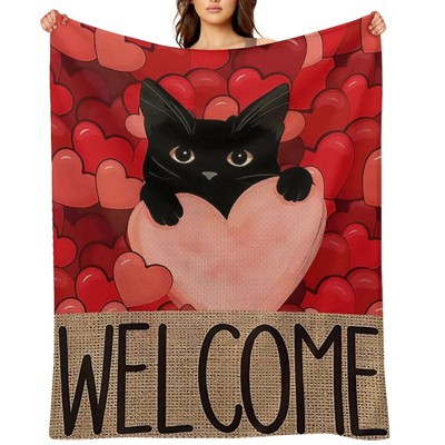 Valentine's Day Black Cat Heart Welcome Throw Blanket - Ultra Soft, Anti-Pilling for Bed & Gifts 40x50 inches