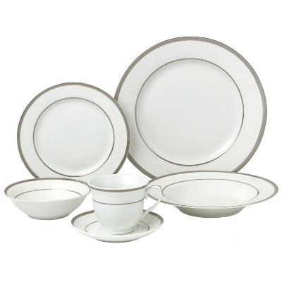 Godinger Silver 12pc Porcelain Laura Dinnerware Set: Stripe Pattern, Gray, Service for 4, Dishwasher & Microwave Safe