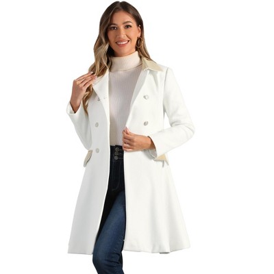 Allegra K Women's Winter Double Breasted Vintage Velvet Contrast Collar Overcoat