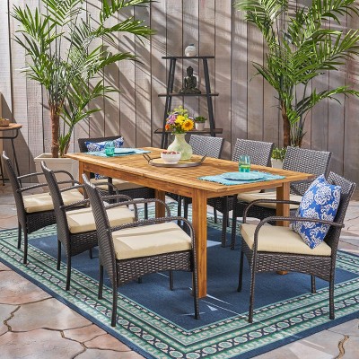 vidaXL Bistro Set Cream White Bamboo, Fabric, Foam, Cotton fiber Medium - Cream white 21.7" x 29.5"