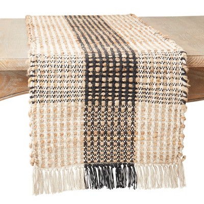 Saro Lifestyle Organic Elegance Striped Chindi Table Runner, 16"x72", Beige