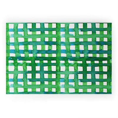 Angela Minca Watercolor green grid Welcome Mat - Deny Designs