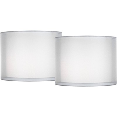 Springcrest Set of 2 Hardback Double Drum Lamp Shades Silver Sheer Small 12" Top x 12" Bottom x 9" High Spider Harp Finial Fitting