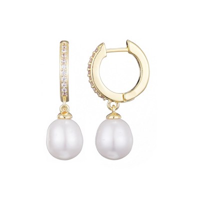 Adornia 14k Gold Plated CZ Halo Drop Huggie Hoop Earrings