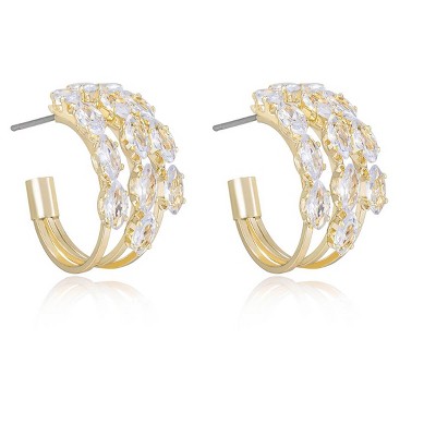 Multi-Crystal 18k Gold Plated Hoop Earrings - Ettika - Clear