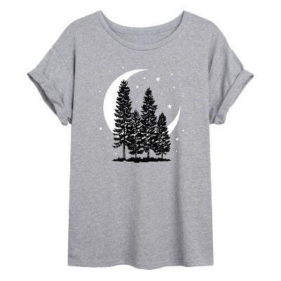 Women's - Instant Message - Crescent Moon Trees Oversized Graphic T-Shirt