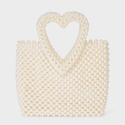 Simulated Pearl Heart Beaded Mini Tote Handbag - A New Day™ Cream