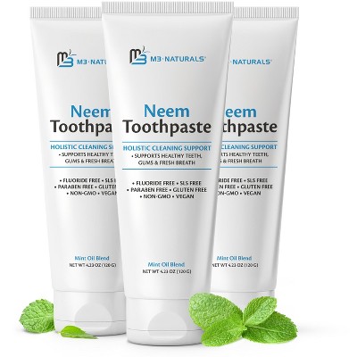 Neem Toothpaste Organic Fluoride Free With Mint, Herbal Toothpaste for Healthy Teeth & Gums, 100% Non-GMO, Vegan, M3, 4.23 oz tube
