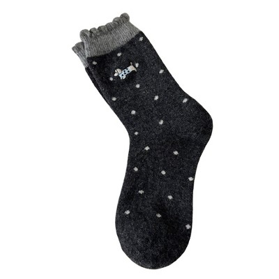 Anna-Kaci Women's 3-Pair Polka Dot Crew Socks with Embroidered Dog Detail Ruffle Cuff Soft Knit Everyday Sock Set - Black