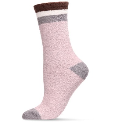 Memoi Women's Solid Retro Stripe Super Soft Cozy Crew Socks