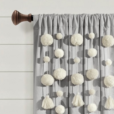 Lush Décor Boho Pom Pom Tassel Linen Window Curtain Panel Light Gray Single 52X95