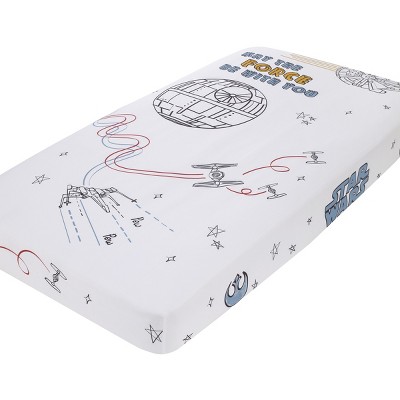NoJo Star Wars May the Force Be With You White, Blue, and Gold Millennium Falcon and Death Star Photo Op Nursery Fitted Crib Sheet