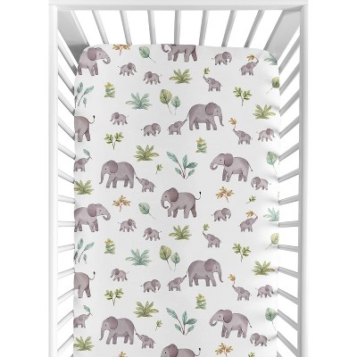 Sweet Jojo Designs Gender Neutral Unisex Baby Fitted Crib Sheet Watercolor Elephants Grey Green and Blue