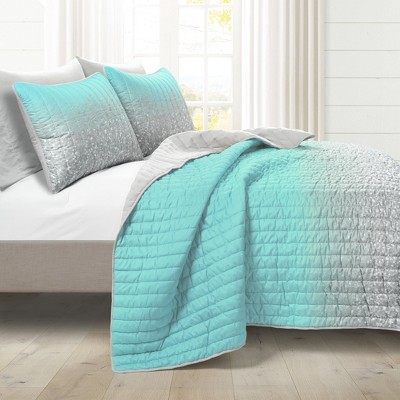 Lush Decor Glitter Ombre Metallic Print Machine-Washable Quilt Aqua/Gray 3Pc Set Twin