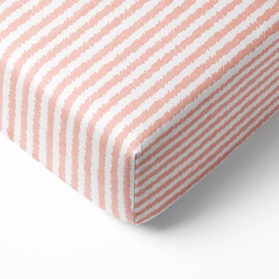 Bacati - Ikat Coral Stripes Muslin 100 percent Cotton Universal Baby US Standard Crib or Toddler Bed Fitted Sheet