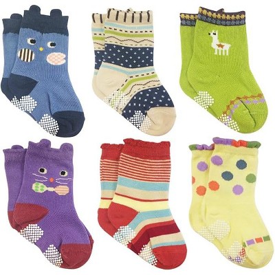 Wrapables Peek A Boo Animal Non-Skid Toddler Socks (Set of 6), Cat and Owl, Large