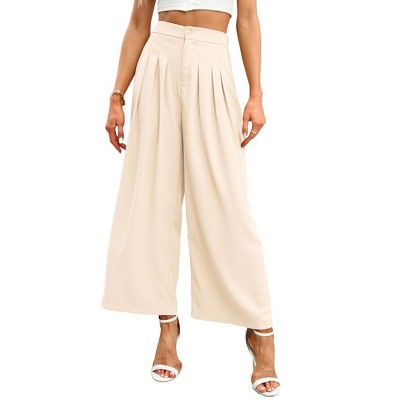 Women High Waisted Wide Leg Pants Flowy Pants Loose Fit Elastic Waist Pleated Trousers Comfy Elegant Business Casual Straight Leg Pants