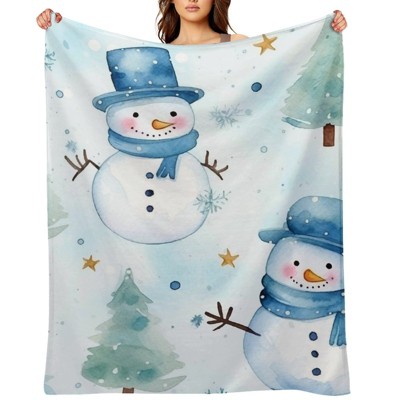 FIONECA Light Blue Watercolor Snowman Christmas Tree Pattern Cheerful Throw Blanket Holiday Cozy Decor 30x40 inches