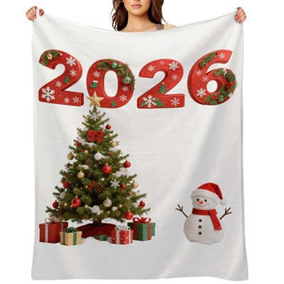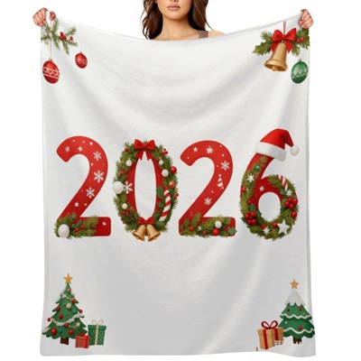 Soscooter 2026 Happy New Year Flannel Throw Blanket Christmas Wreath Tree Gift Pattern Festive Cozy Holiday Blanket