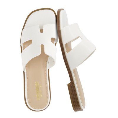 CUSHIONAIRE Voyage Cutout Strap Slides for Women, Slip On Summer Flats, Trendy Footwear, Comfortable Vacation Style Sandals for Women