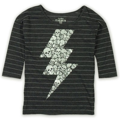 Ecko Unltd. Womens Ls Vnk Mtllc Strp Skull Graphic T-Shirt