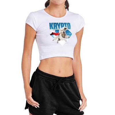 Women's Superman 2025 Krypto Jump Cap Sleeve Baby Rib Crop Top