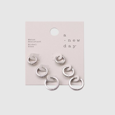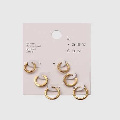 Glass Crystal Trio Water Resistant Metallic Hoop Earrings - A New Day™ Gold