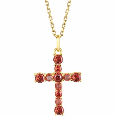 GILDED 1/2 or 1/4 CTTW Lab Grown Diamond Cross Pendant Necklace in 925 Sterling Silver or 14KT Yellow Gold Plated, 18" Chain