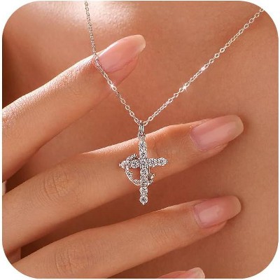 14K Gold Plated Cross Pendant Necklace for Women - Adjustable Faith Chain