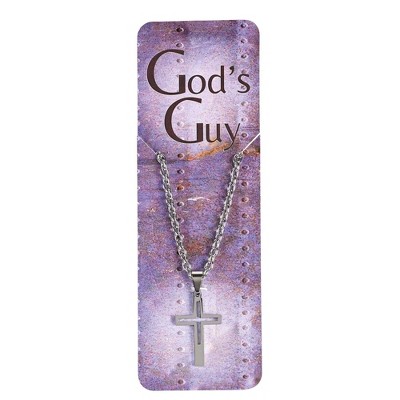 Dicksons Gods Guy Box Cross Cutout Silver 18 Inch Stainless Steel Necklace On Presentation Card