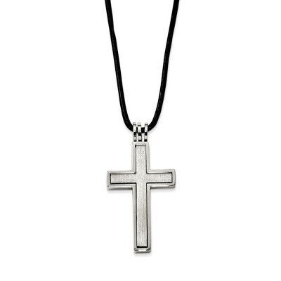 Black Bow Jewelry Stainless Steel & Gray Carbon Fiber Small Cross Necklace, 20 Inch