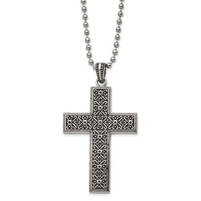 Black Bow Jewelry Stainless Steel Large Antiqued Fancy Cross Necklace, 22 Inch
